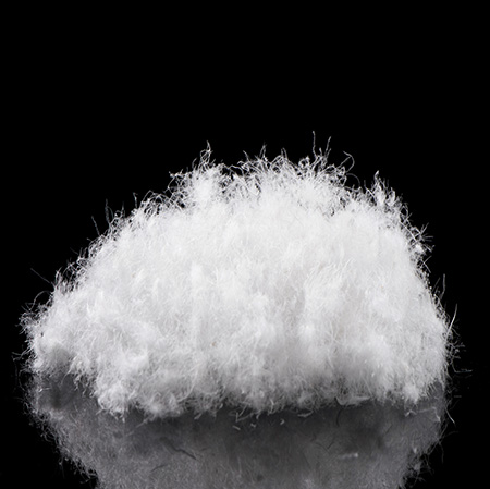 Made with 1.2D*25MM polyester staple fiber, featuring ultra-fine fiber specifications, this product boasts a soft and smooth feel, offering a down-like tactile experience. It is suitable for filling high-end down jackets, comforters, pillows, and other premium bedding products. The short fiber length ensures even distribution after filling, conforming to the product's internal structure and providing a lightweight, comfortable feel while maintaining basic warmth, meeting the core requirement of high-end fillings for a delicate tactile experience.